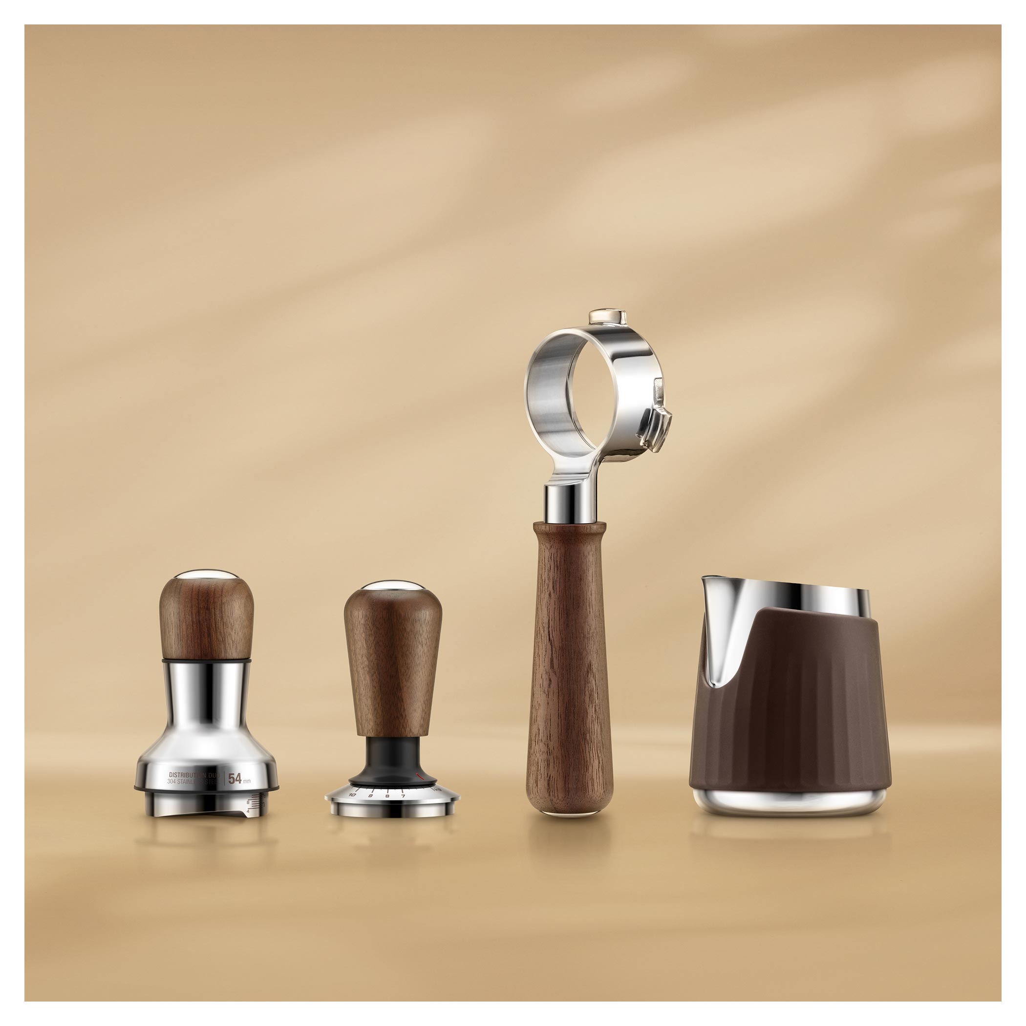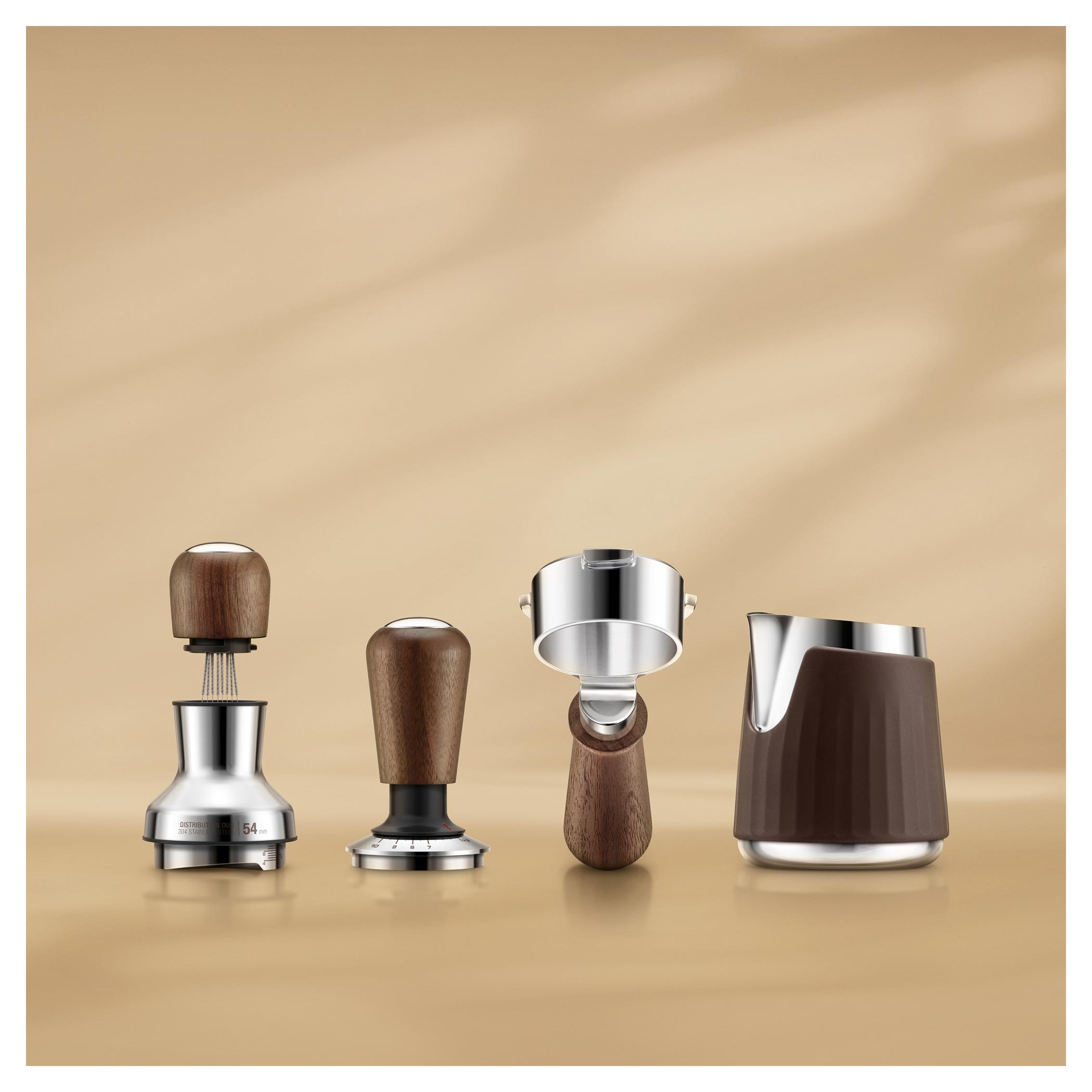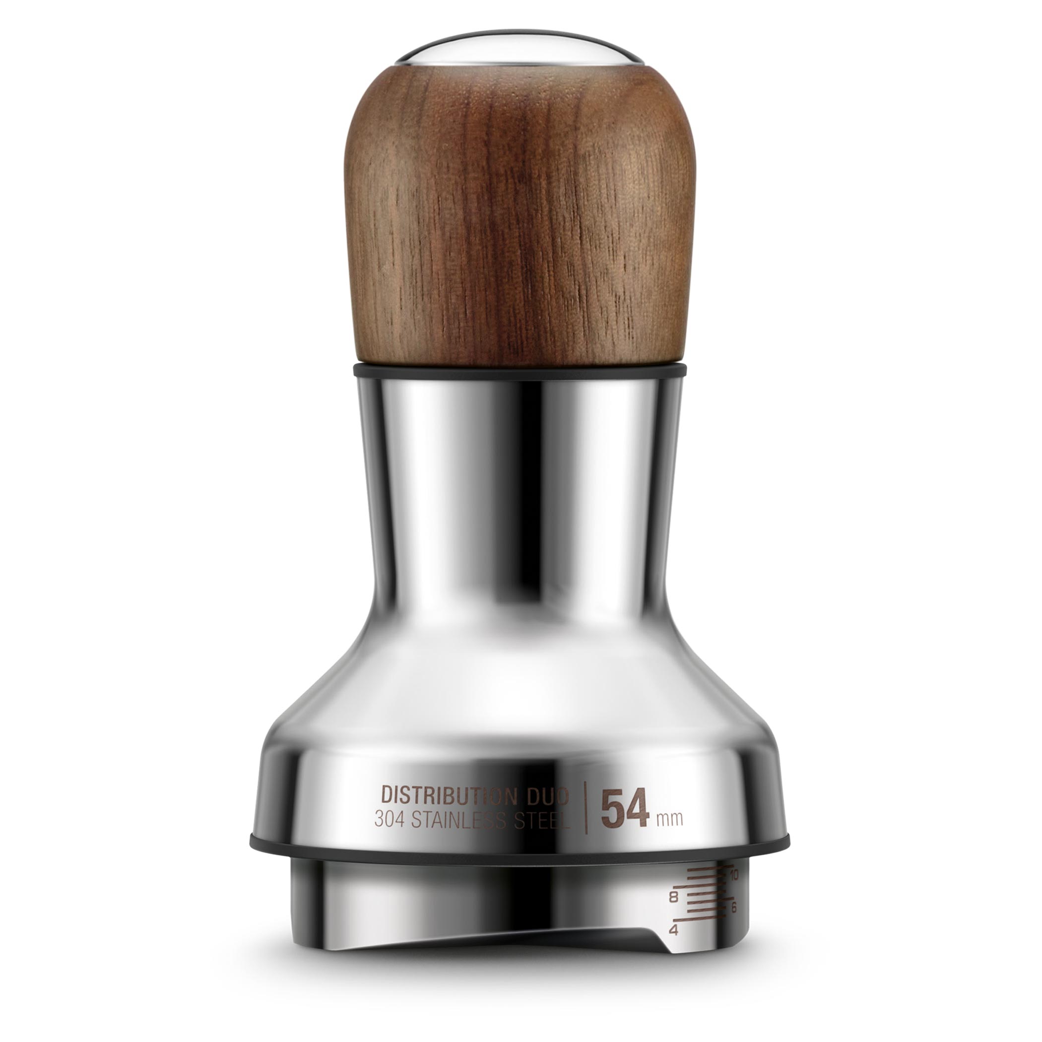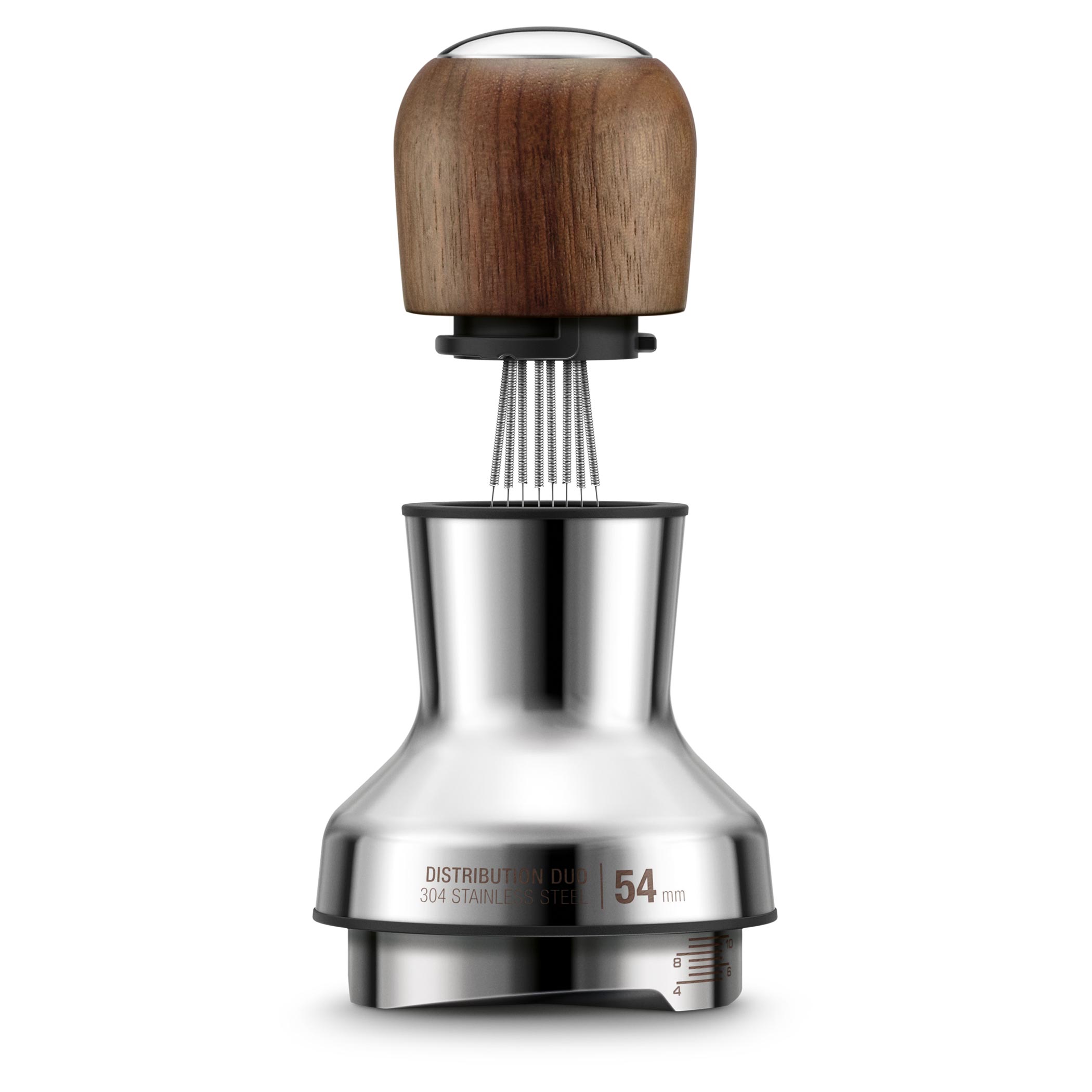 Drevená horná časť je odnímateľná a ukrýva 8 ihličiek, ktoré premiešajú namletú kávu v portafiltri. Tie sa môžu nastaviť podľa potreby pod uhlom, ktorý si zvolí užívateľ. Nastaviteľná hĺbka spodného distribučného dielu podľa zvoleného filtra je samozrejmosťou.