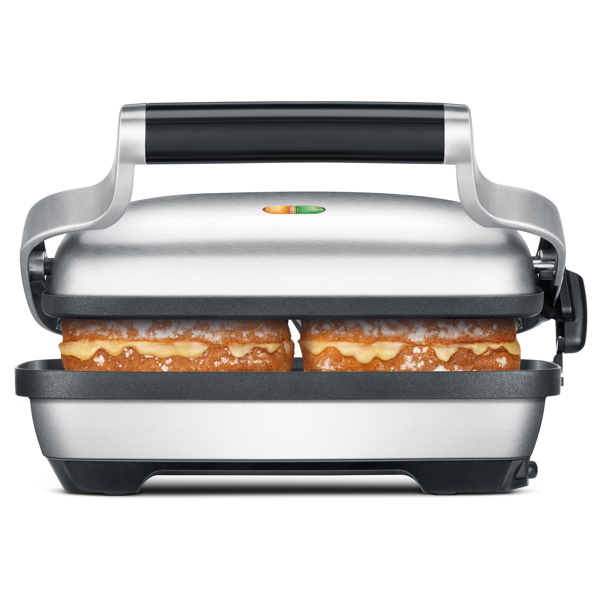 Ako zabezpečiť, aby sa váš sendvič v prístroj nerozpučil a zostal krehký bez roztečeného syra na grilovacích doskách?Kontaktný sendvič gril Sage The Perfect Press™ dokáže prispôsobiť tlakovú záťaž od 2 kg až do 425 g pre správne jemné a načachrané opečenie sendvičov.