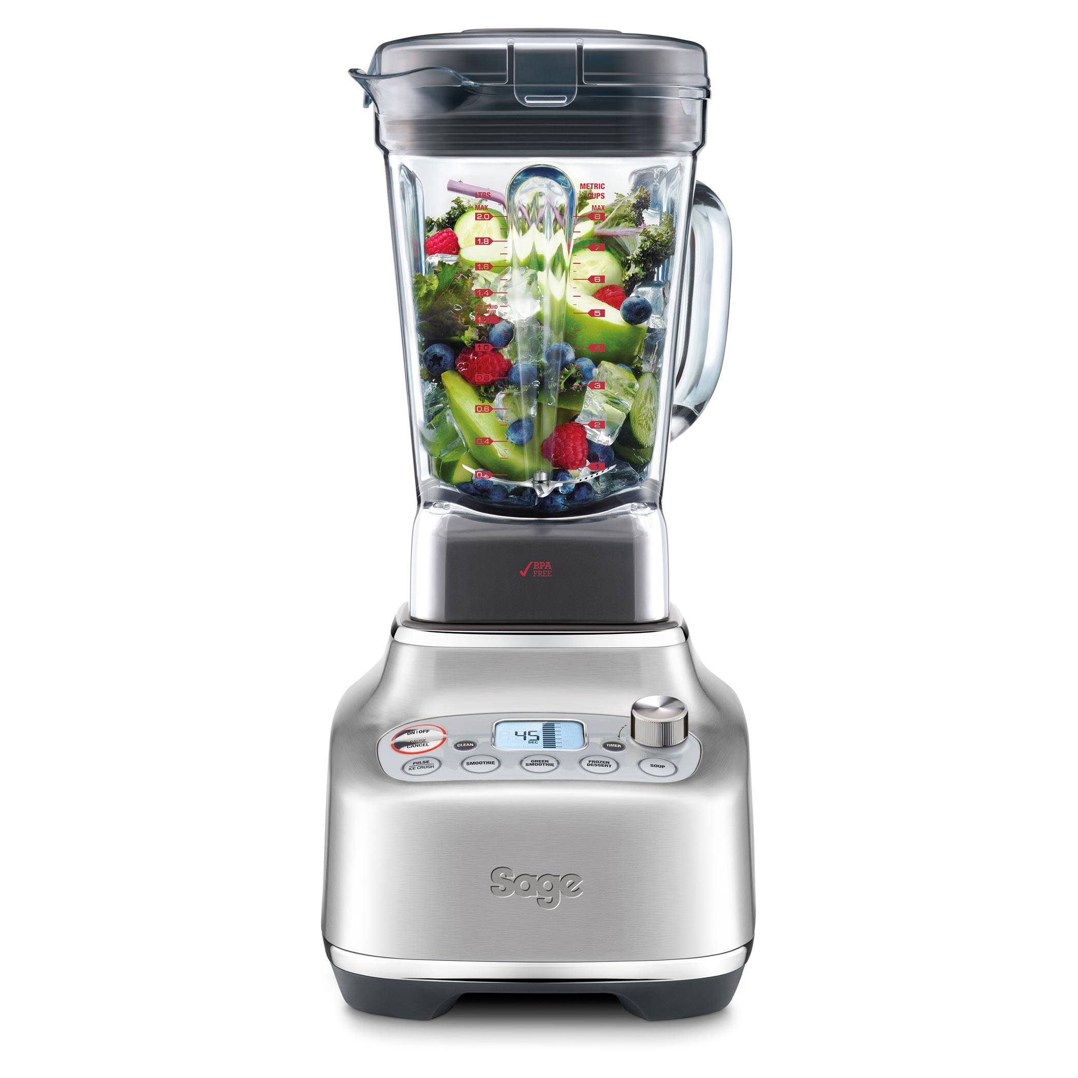 Mixér SAGE SBL920 the Q™ je jedinečný špeciálnym nožovým systémom, intuitívnym ovládaním, ale aj použitými materiálmi a príslušenstvom. Robustná kovová základňa zaisťuje tichý chod bez vibrácií. Nádoba mixéra je vyrobená z Tritanu™ (Kopolyester Eastman Tritan™). Ide o BPA-Free kopolymér, ktorý je odolný, používaný na výrobu domácich spotrebičov, ktoré môžu vydržať extrémnu záťaž a byť opakovane umývané v umývačke na riad. Produkty vyrobené z Tritan™ sú odolné proti nárazu a poškriabaniu a zostanú čistejšie a odolnejšie aj po niekoľkých stovkách cyklov v umývačke na riad.